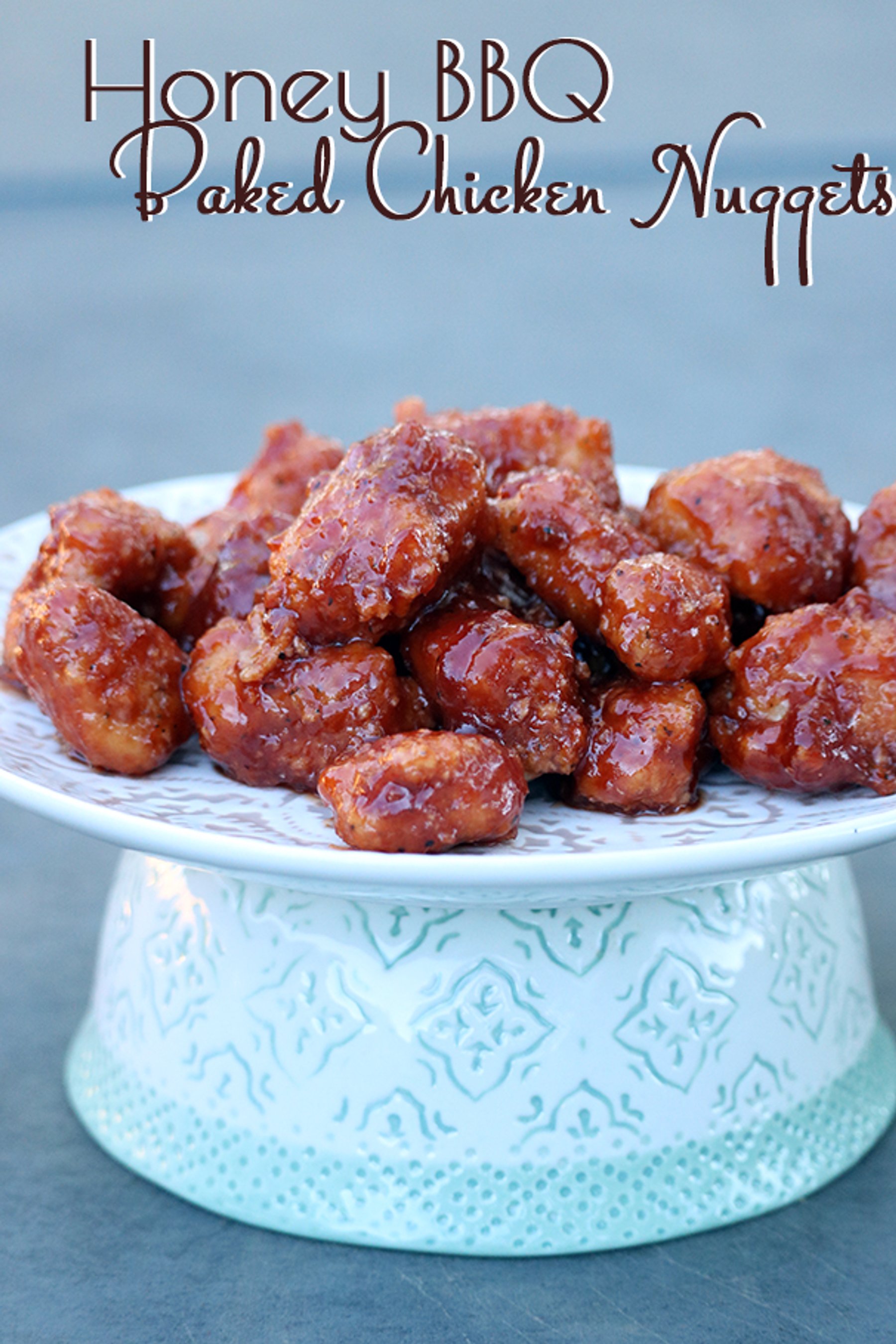 Honey BBQ Baked Chicken Nuggets – sweet, sticky and finger-lickin’ good popcorn style chicken nuggets.