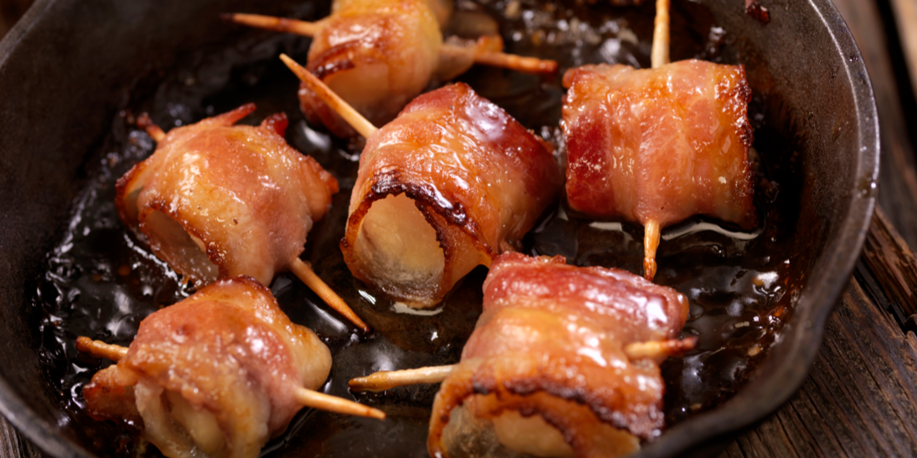 Every Thanksgiving game-plan needs a great holiday appetizer. These scallops are my go-to for something to serve while finalizing the last of the dinner prep. They are salty, meaty, savory, and sweet from the honey bourbon glaze. I like making them year-round, they're that tasty.