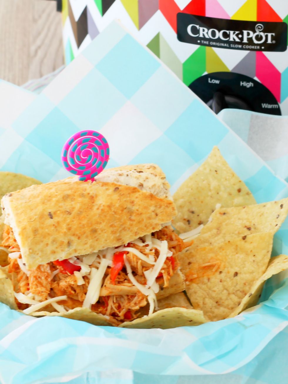 A freezer meal made for the slow cooker! Chicken "cheesesteak" style sandwiches boldly flavored with honey, chipotle, smoked paprika and beer, topped with melty Monterey Jack cheese.