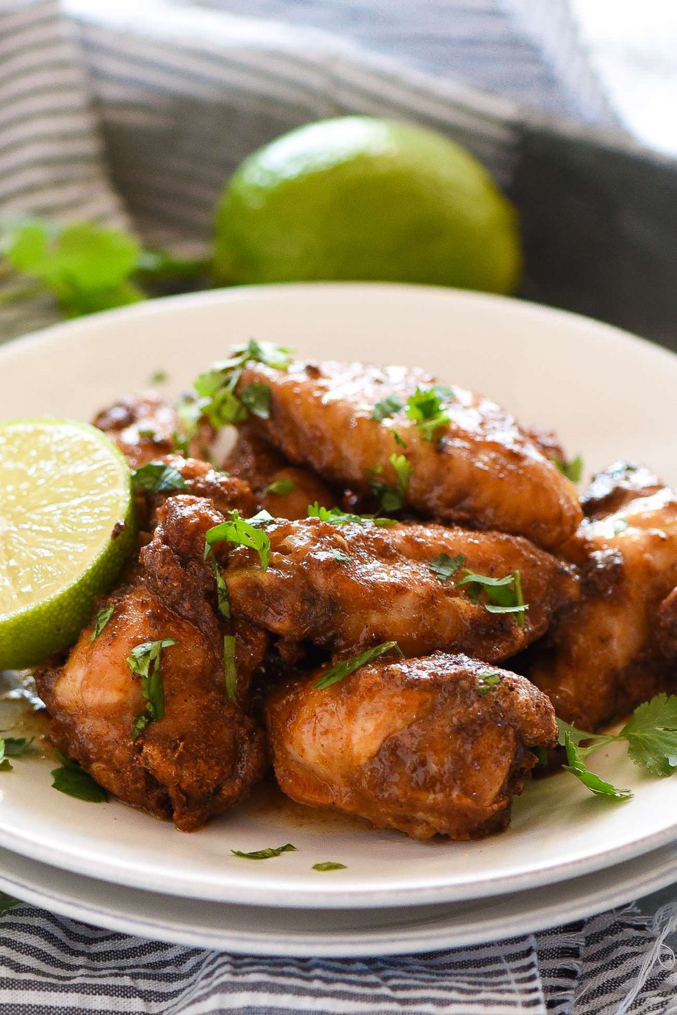 Honey Chipotle Crispy Baked Wings are an easy and healthy game dish! They are coated in a spicy chipotle rub, baked to crispy perfection then smothered in a honey lime sauce!