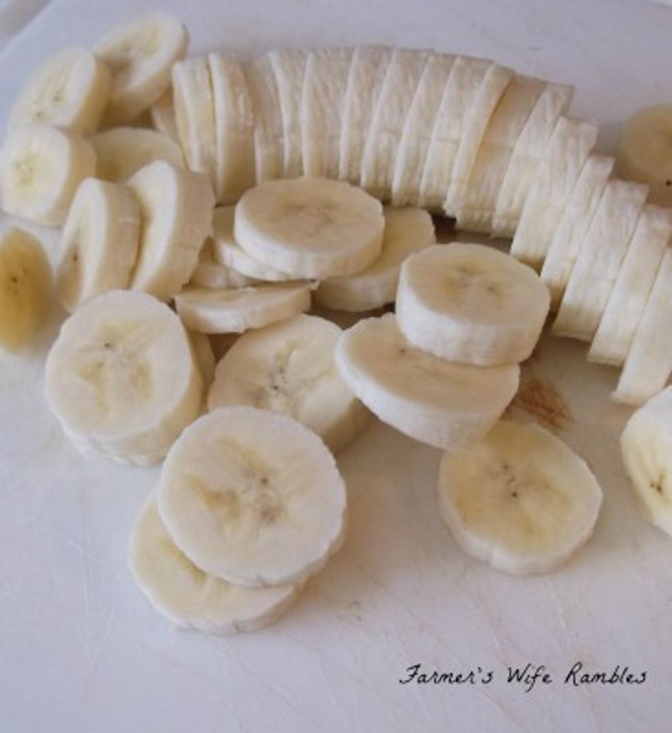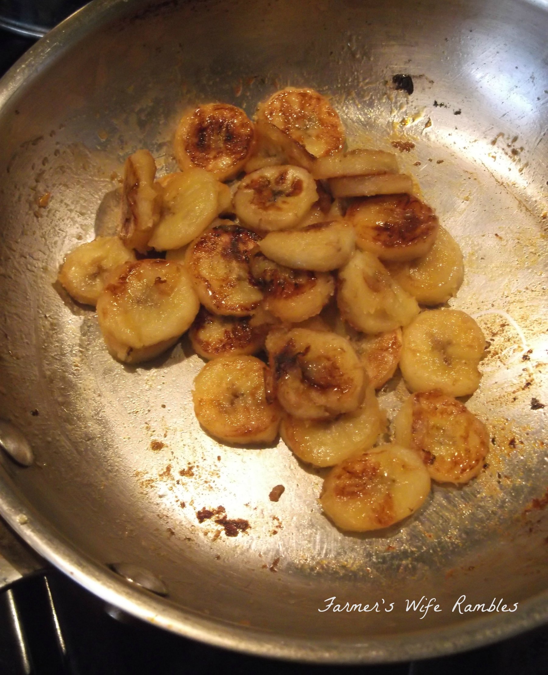 1. First peel and slice your bananas. You don’t want your slices to be too thin or too thick. If they are too thin they will cook too fast and burn, if they are too thick they will take a really long time...