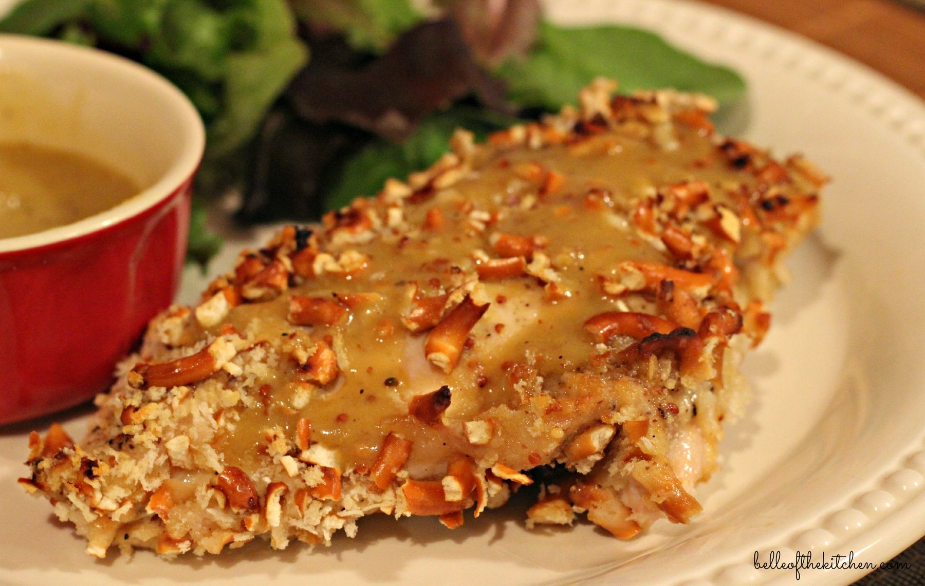If you love honey mustard and pretzels, you will love this chicken! A little sweet, a little salty, and really delicious!
