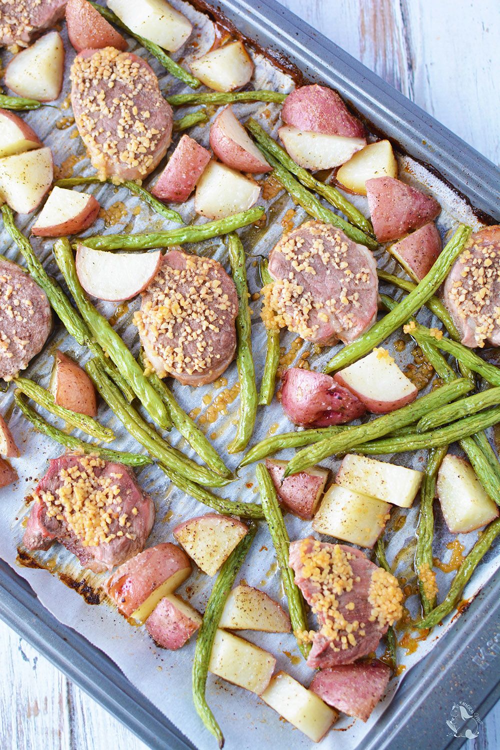 Here we have a pork tenderloin sheet pan recipe that's far from boring. The honey garlic flavor will have everyone in the family's taste buds dancing. Sheet pan dinners are fabulous for people who want to minimize dirty dishes and overall frustration. Personally, I love when a recipe requires little countertop space and cooks at the same time as all of the ingredients.
