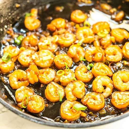 This honey garlic shrimp recipe is easy and super fast to make. Use a well seasoned skillet to give this dish a great flavor.