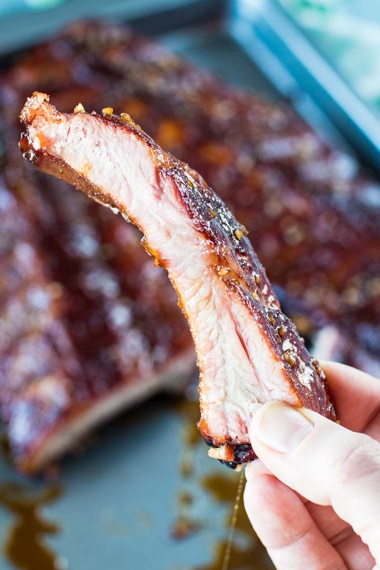 - In a small bowl combine the ingredients for the rub. Spread the dry rub over the ribs covering them completely. Wrap in saran wrap so they are completely covered. Place in fridge for a minimum of 2...