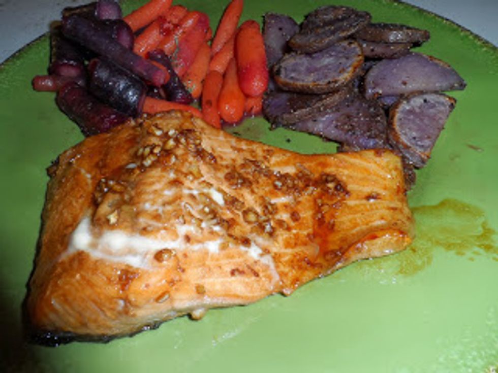 Whisk together the honey, soy sauce, vinegar, ginger, garlic and oil. Marinate the fish in the mixture for 20-60 minutes. While the fish is marinating, whisk together the sauce ingredients. Refrigerate...