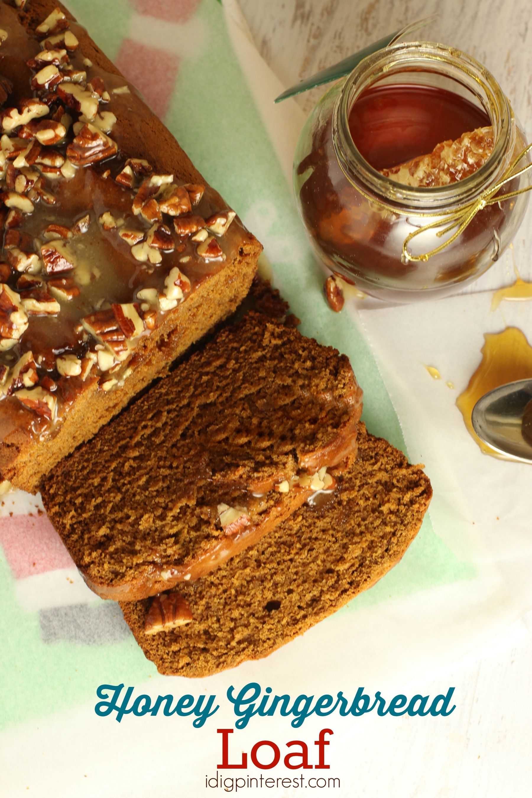 Honey Gingerbread Loaf with Honey Pecan Glaze