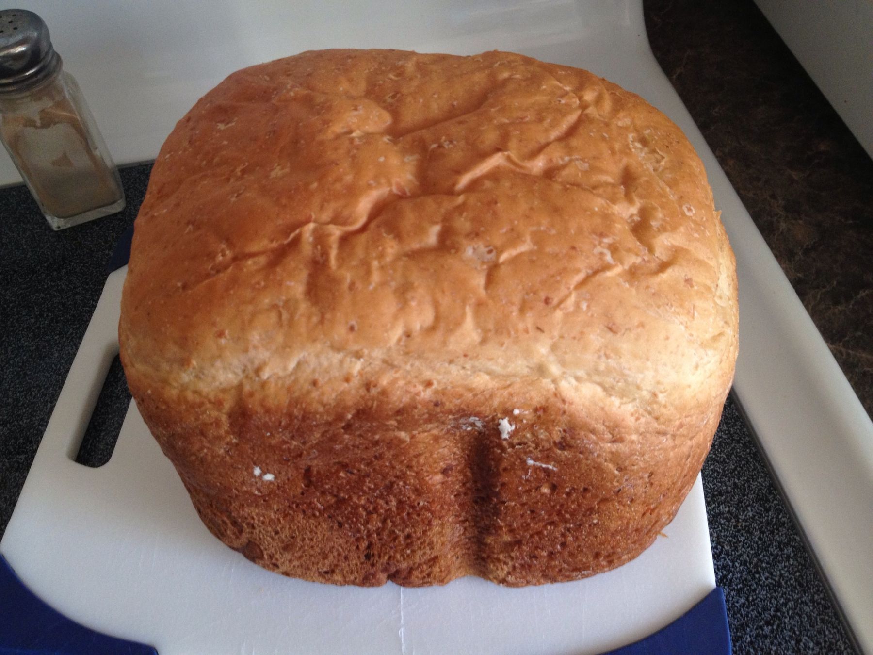 Set the bread machine to the basic or sandwich bread recipe and start the machine.