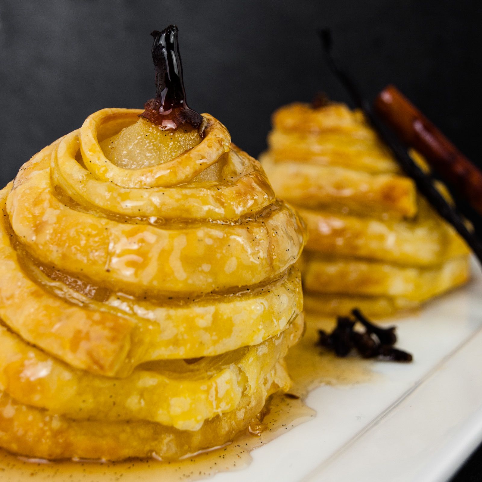 Honey puff-pastry wrapped pears InJohnnysKitchenJune 19, 2020 333 Photo by www.injohnnyskitchen.com Soft poached pears with vanilla, cinnamon and cloves, wrapped in a crunchy layer of puff pastry and topped with the sticky poaching liquidTry itSee the full directions on my site