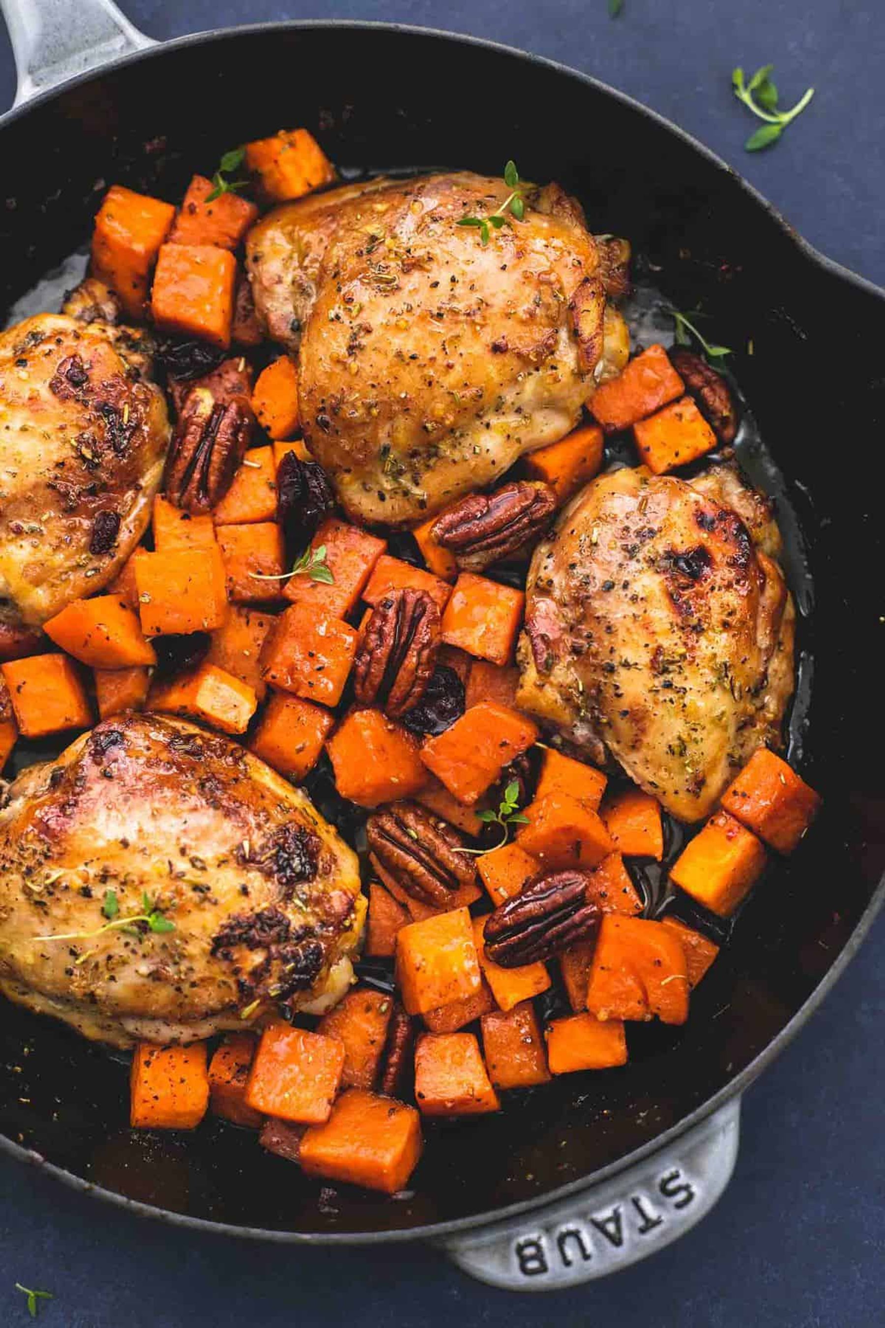 Honey Roasted Chicken and Sweet Potatoes Skillet | Creme De La Crumb