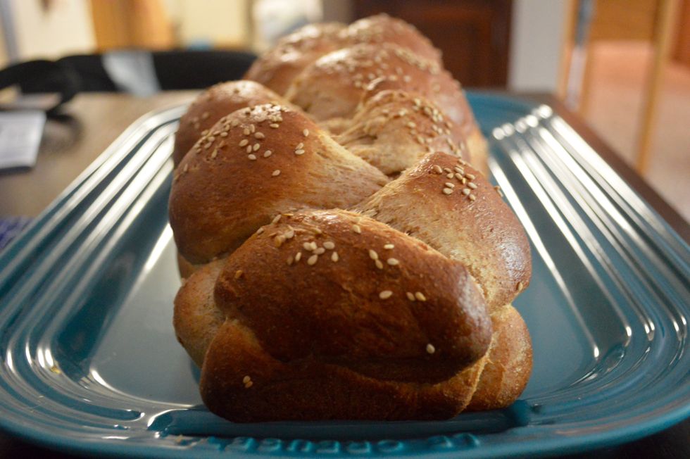 13. Whisk the remaining egg with 1 Tablespoon of water. Brush on top of each loaf and sprinkle with sesame seeds immediately before placing on the middle rack of the oven.