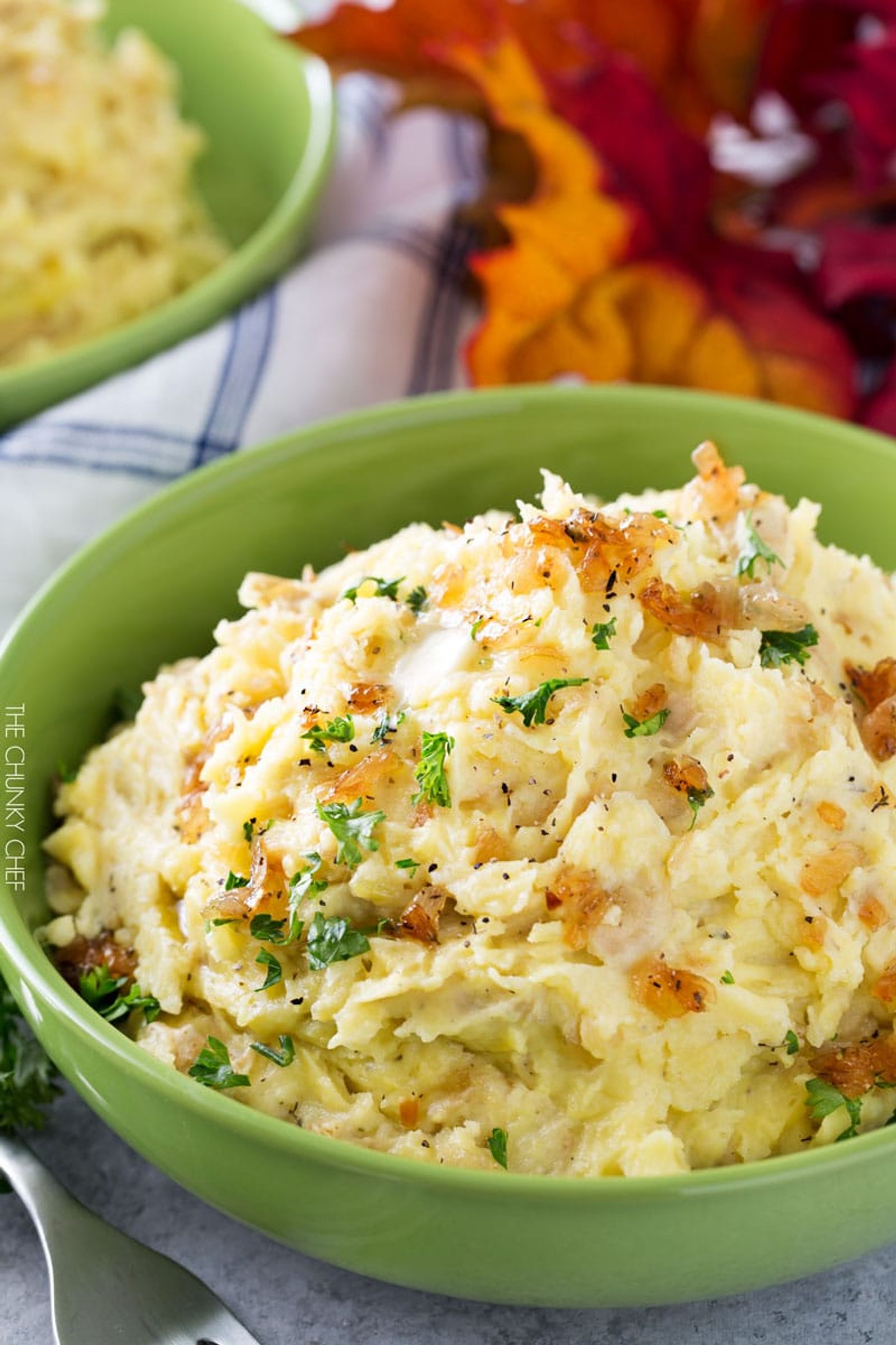 Horseradish Mashed Potatoes with Caramelized Onions - The Chunky Chef