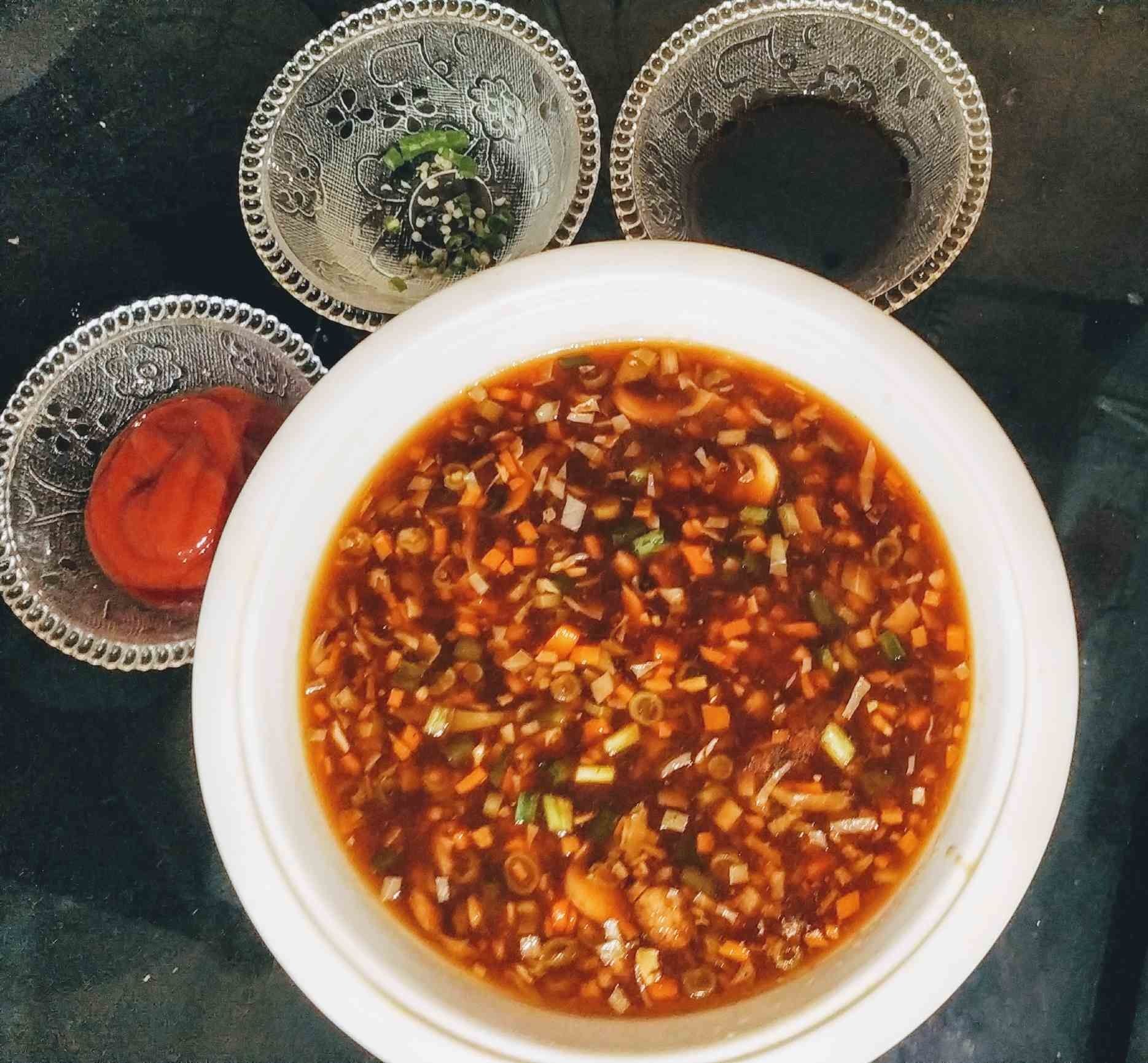Healthy hot and sour soup recipe made with nutritious vegetables, herbs and sauces. Boost your immunity with this soup to fight against cold, flu and sore throat.
