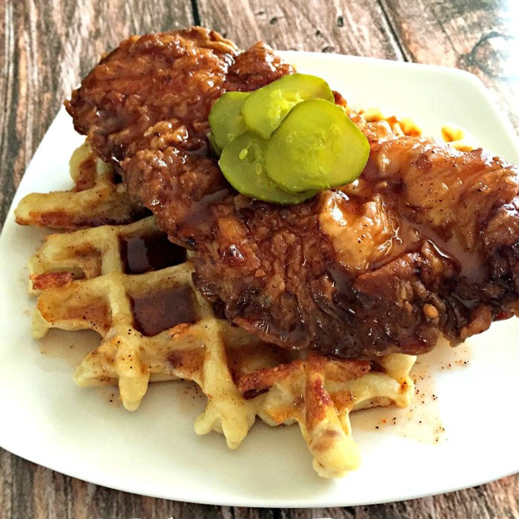 Hot Chicken and Jalapeño Bacon Cheddar Waffle