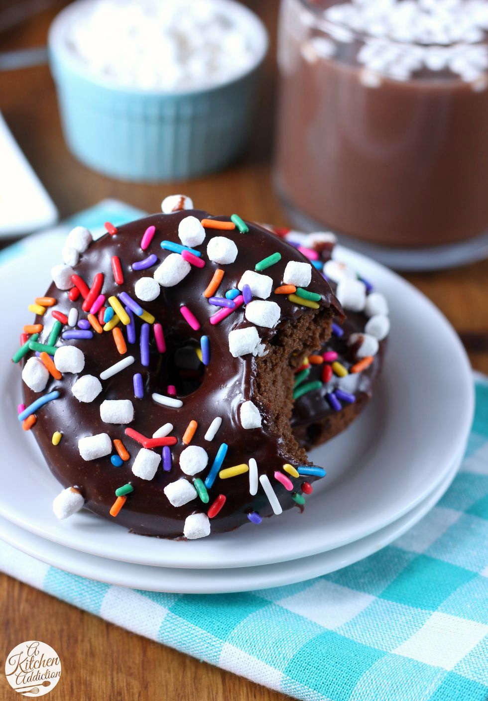 Tender, chocolaty hot chocolate donuts topped with a rich chocolate glaze!
