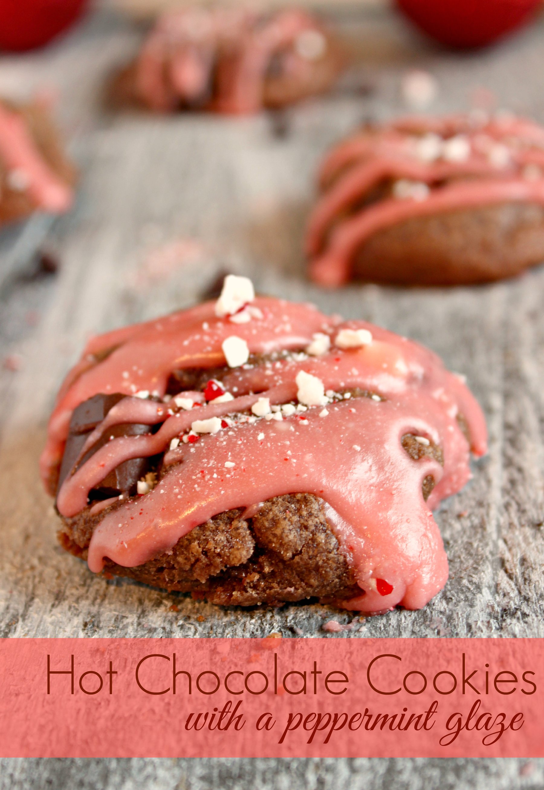 Hot Chocolate Fudge Cookies with a Peppermint Glaze