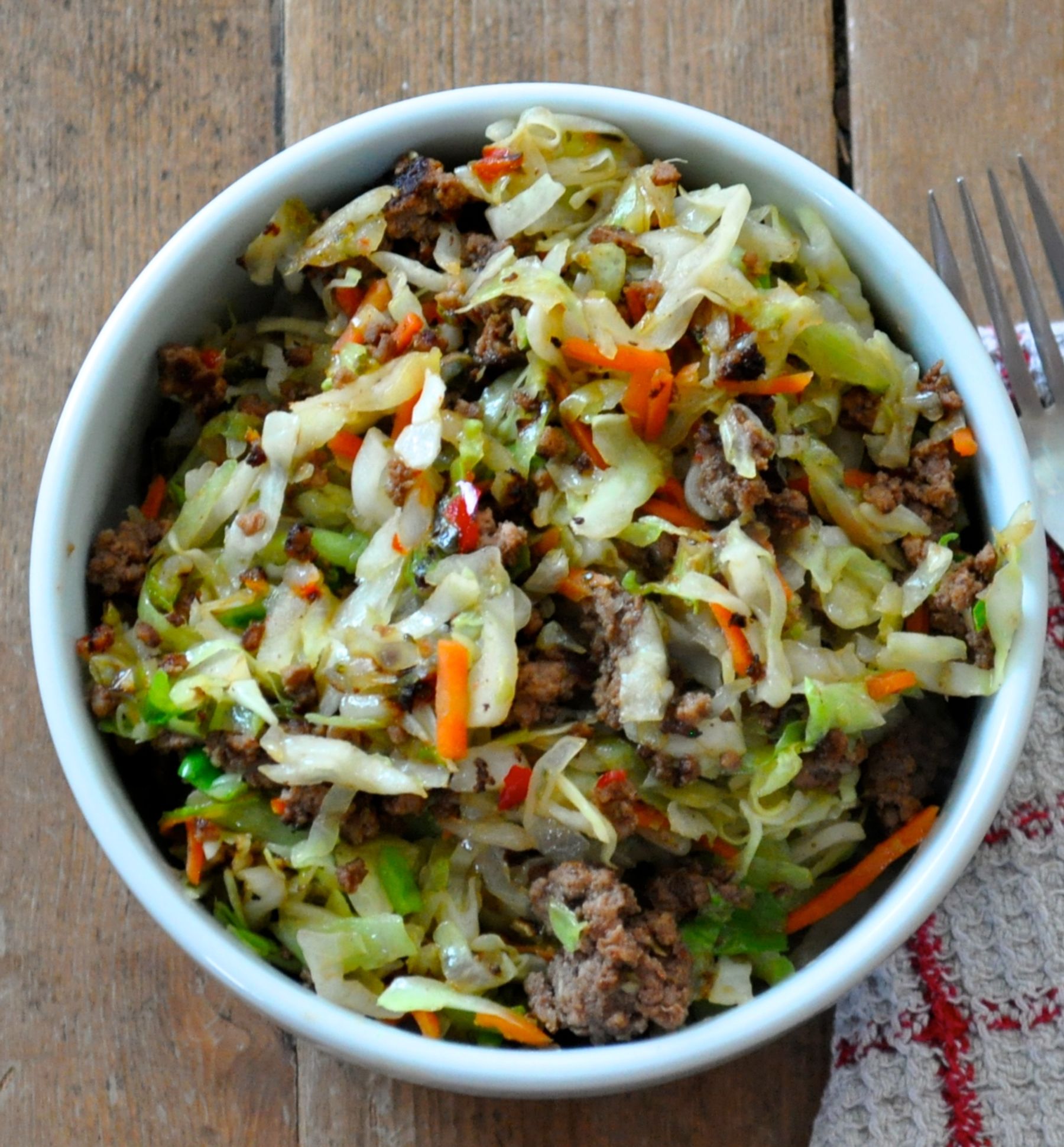 A recipe for Hot Egg Roll Salad, a low calorie, high vegetable and protein salad that will leave you powered up all day. It's grain free and soy free(if you like it that way) and cooks in about 5 minutes flat.