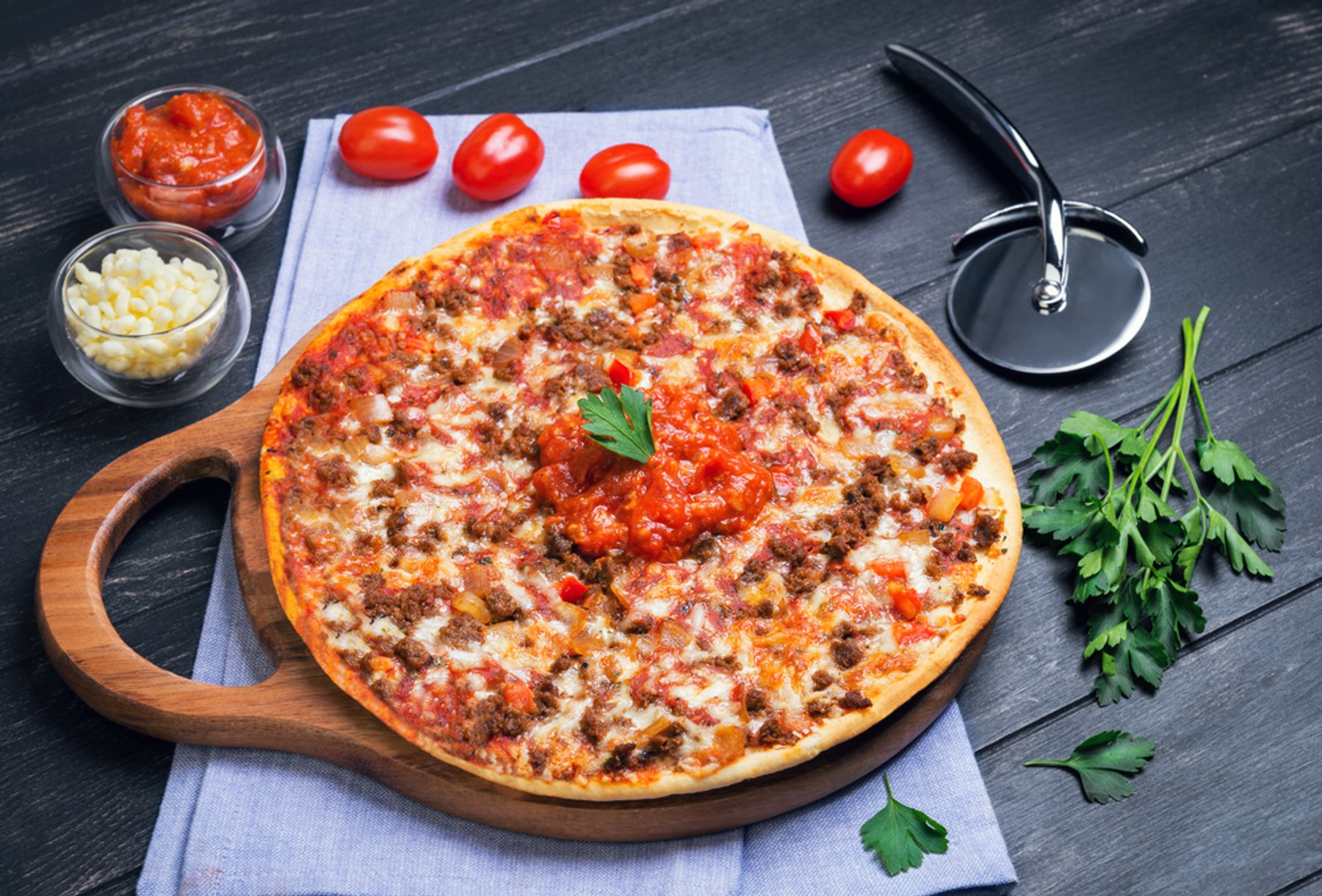 Learn to make a frugal Bolognese pizza at home! Cheap and delicious, this recipe will become your new favourite! Traditional Bolognese pizza is expensive and not too healthy. My version boasts a decadent taste and has only a few calories per serving. Made with beef, Cheddar cheese, garlic puree, and lots of veggies, this homemade pizza recipe is delicious and crispy.