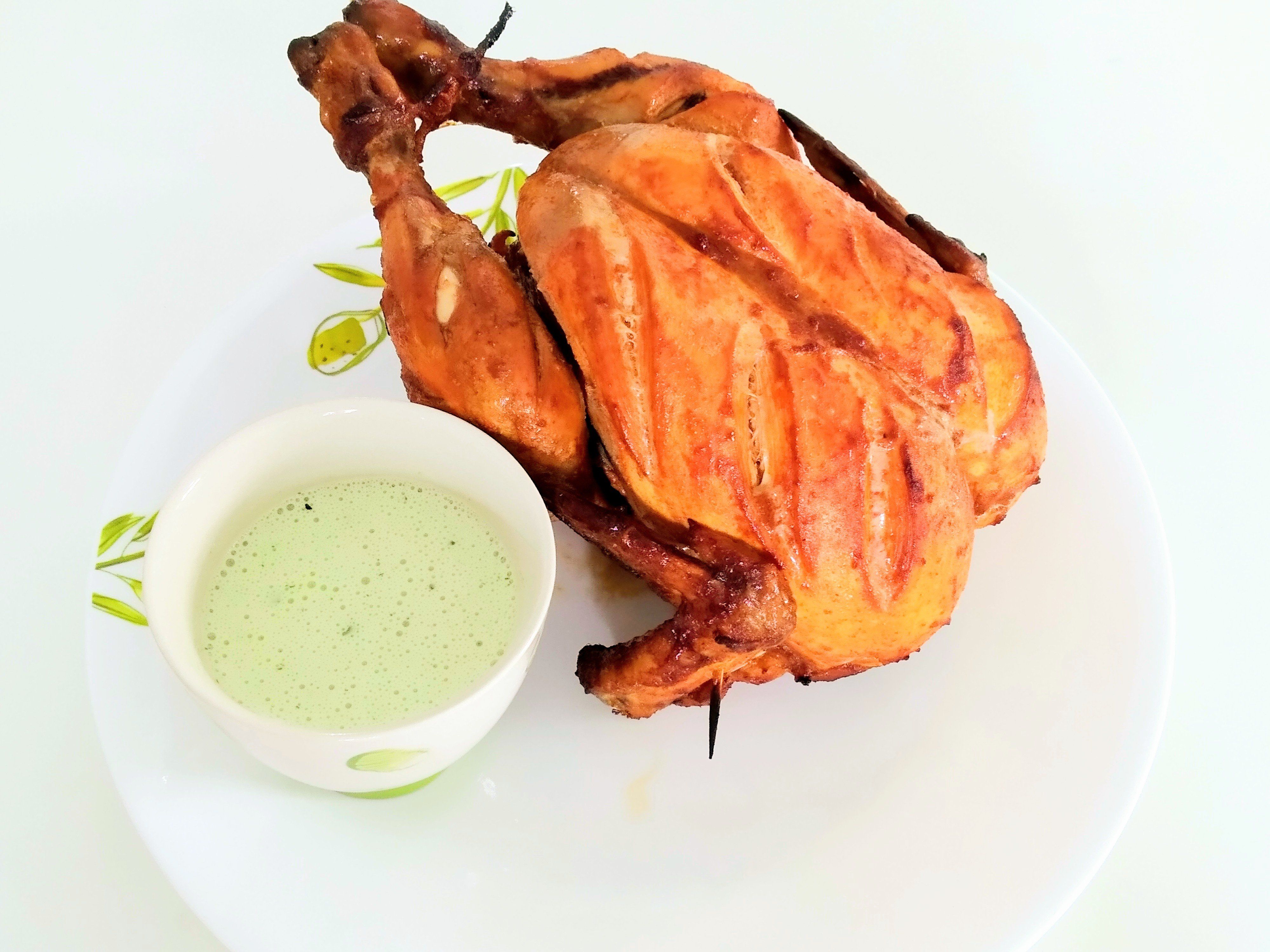 HOW TO MAKE ROASTED ROTISSERIE CHICKEN AT HOME GameOfSpiceNovember 30, 2020 117 A rotisserie chicken made using simple spices like smoke paprika,ginger garlic paste,cumin powder,lemon juice and soy sauce. A dipping sauce made with cilantro and garlic is the best accompaniment.rotisserie chickenroasted chickengrilled chickenoven baked chickensmoked paprikaparty fooddipping saucemayo dressingcilantro mayo
