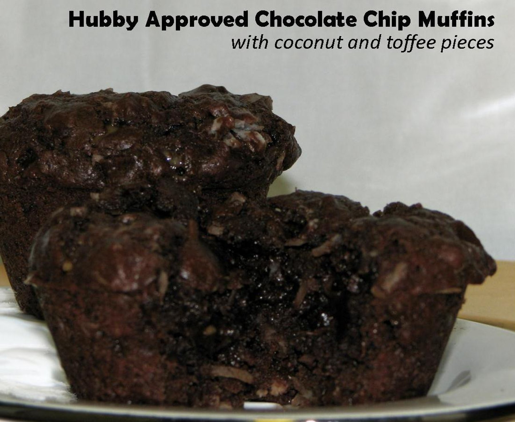 Rich, chocolate muffins with chocolate chips, shredded coconut and Toffee pieces. Recipe can easily be cut in half for 6 muffins.