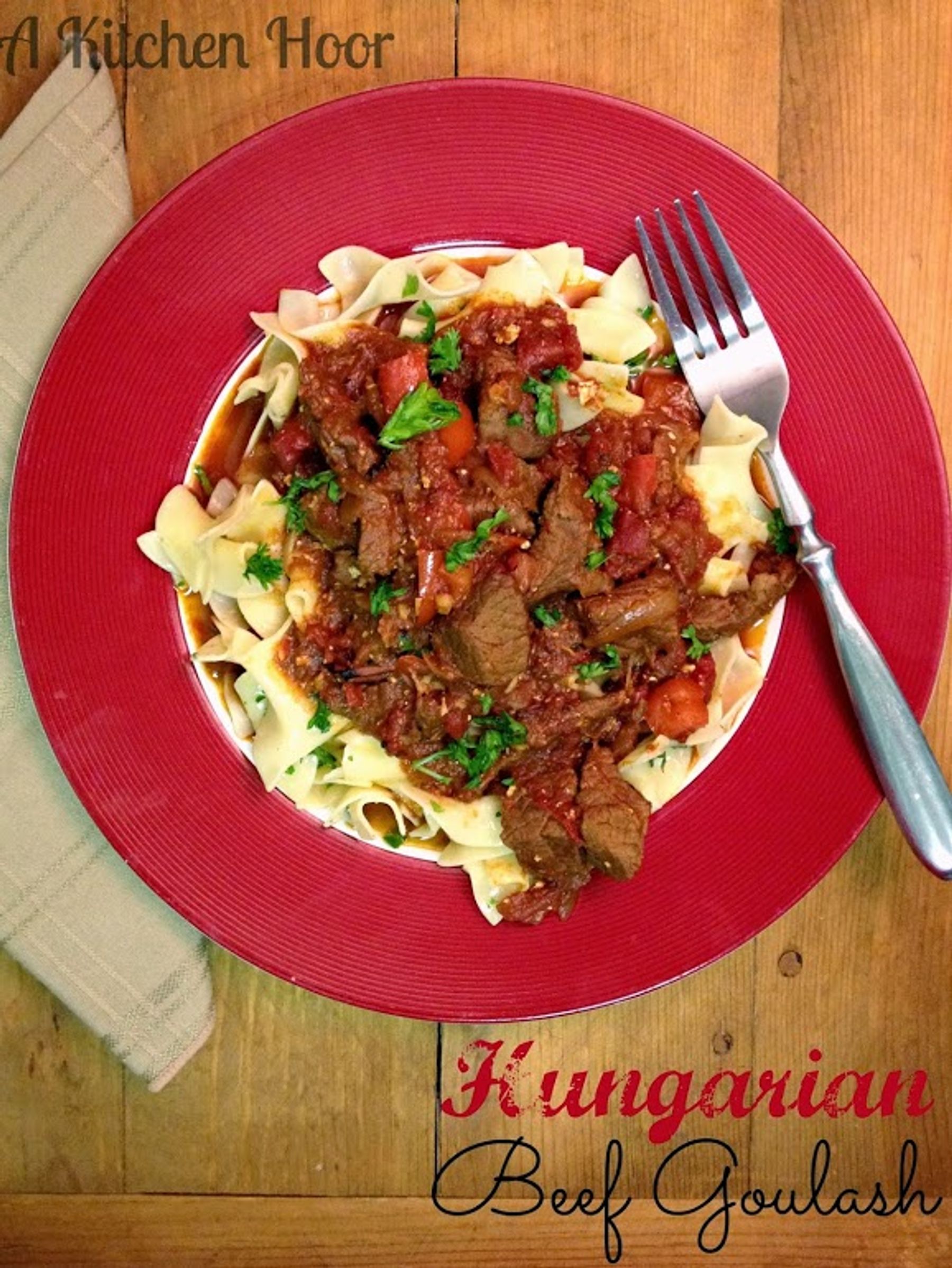 Tender beef is simmered in a paprika pepper sauce for this hearty meal.