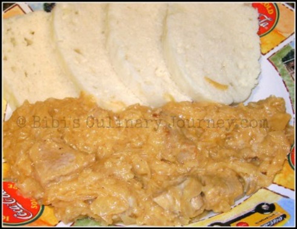 In a large pot or Dutch oven melt the butter or lard. Add finely chopped onion and Hungarian paprika. Cook while stirring for about 2 minutes. Add the cubed pork and quickly brown the pork on all sides....