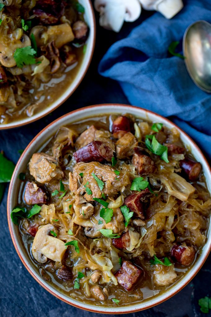 Hunter's Stew (Polish bigos) Nicky CorbishleySeptember 12, 2019 268 Kitchen SanctuaryA Polish Classic – Hunter's Stew (Bigos) from Ren Behan's new book Wild Honey and Rye!Hunter's Stew (Polish bigos)See the full directions on my site