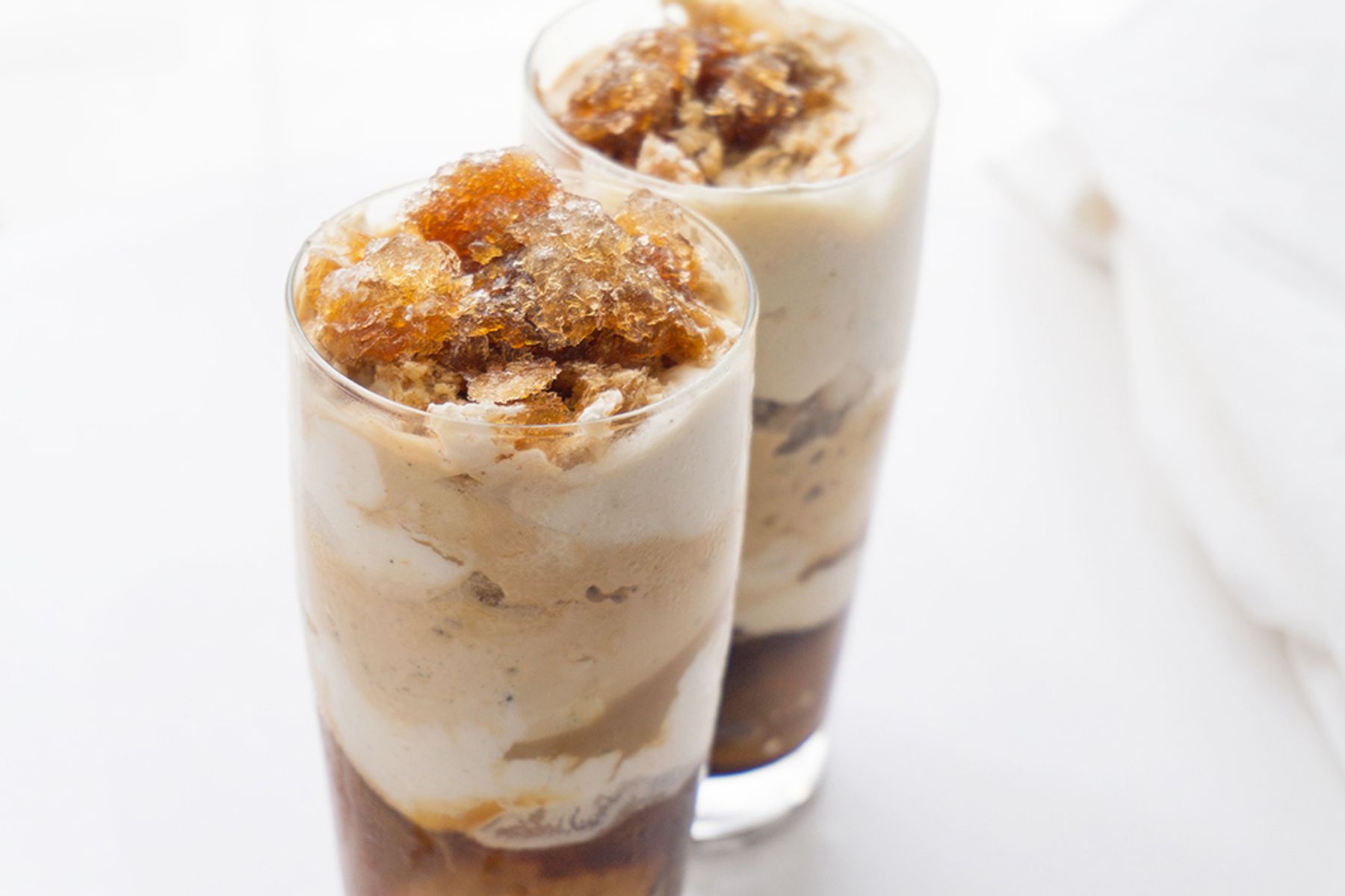 Once summer is in full swing, hot coffee goes by the wayside and iced coffee moves in. This iced granita is flavored with hazelnut Frangelico liqueur and layered with Maple Orange Cream.