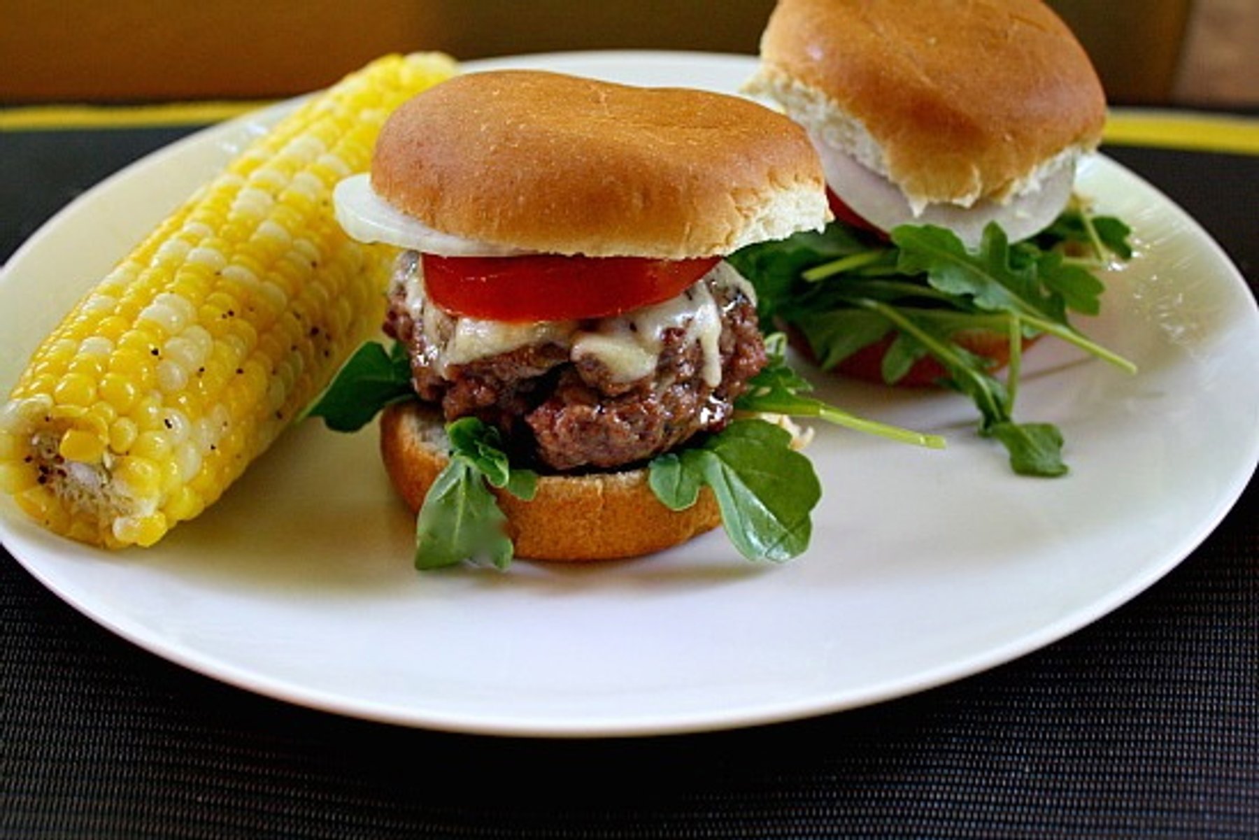 Well flavored 80/20 blend ground beef, topped with Gruyere cheese, a slice of onion and tomato. Simply delicious.