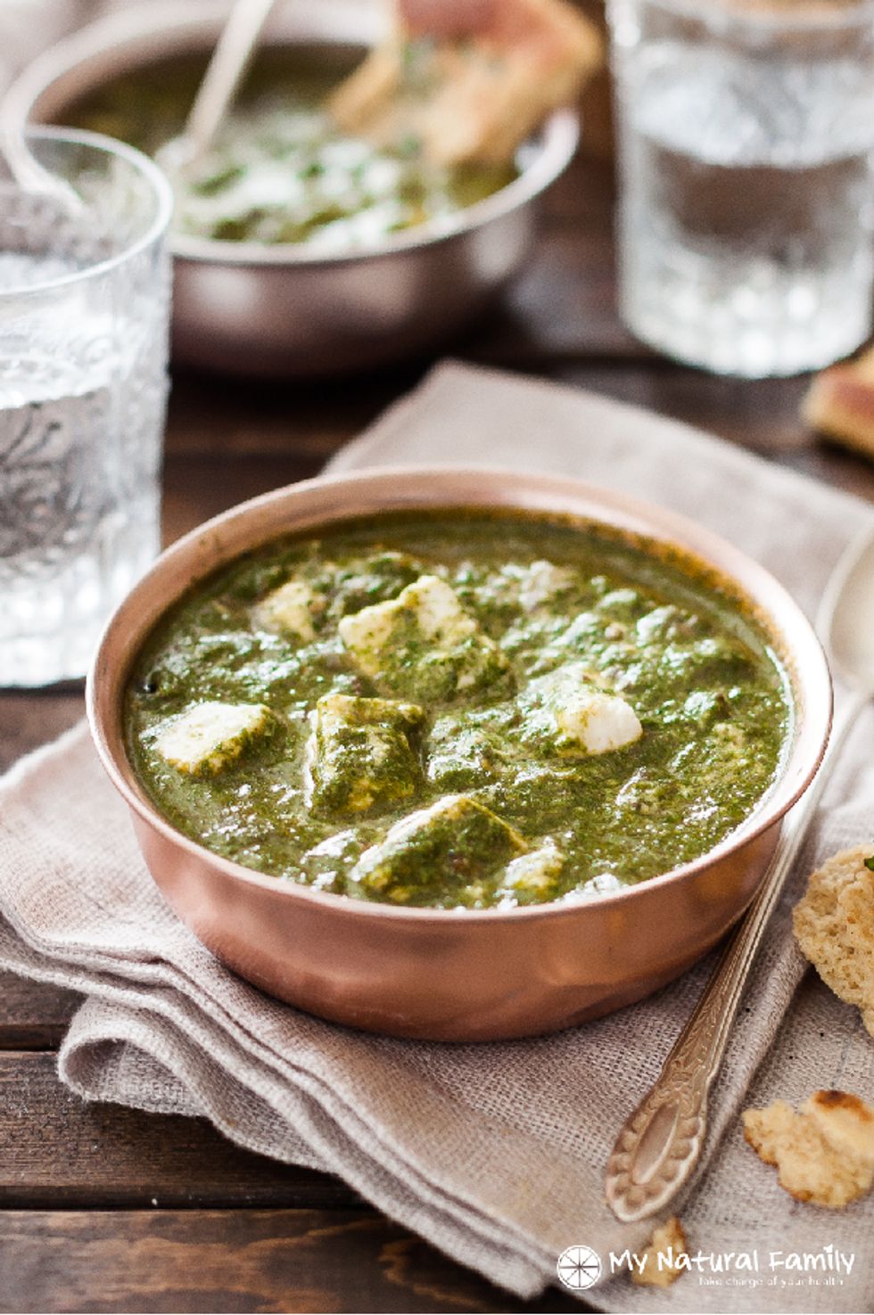 This Saag Paneer is simple to make and full of nutritious ingredients. I made my own paneer cheese. It\\\'s incredibly easy to make and only involves milk and lemon juice. Paneer cheese bought in the store works wonderfully as well, of course. Serve with Naan bread and rice.