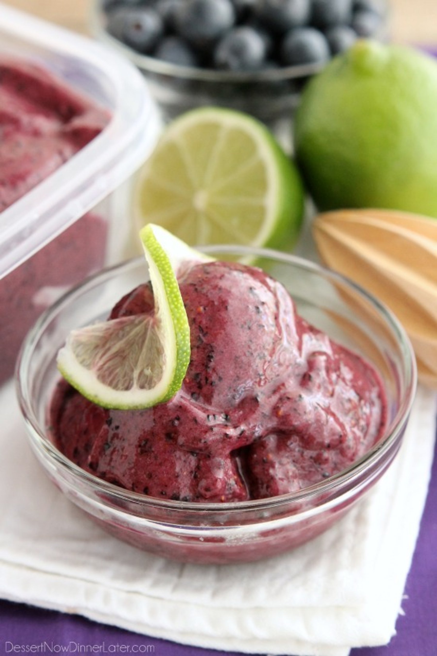 With only 4 ingredients and 5 minutes or less in the food processor (or blender), you can have this healthy Instant Blueberry Frozen Yogurt!