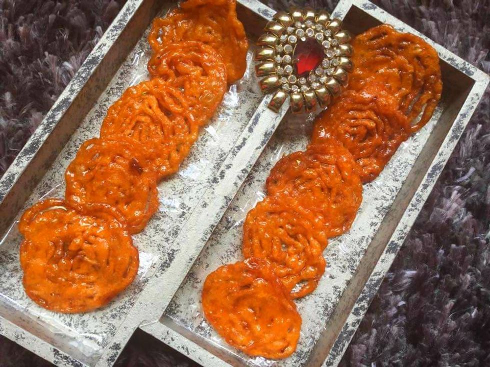 An Indian dessert and a very popular one too! Dipped in sugar syrup and flavored with saffron..You cannot eat just one!