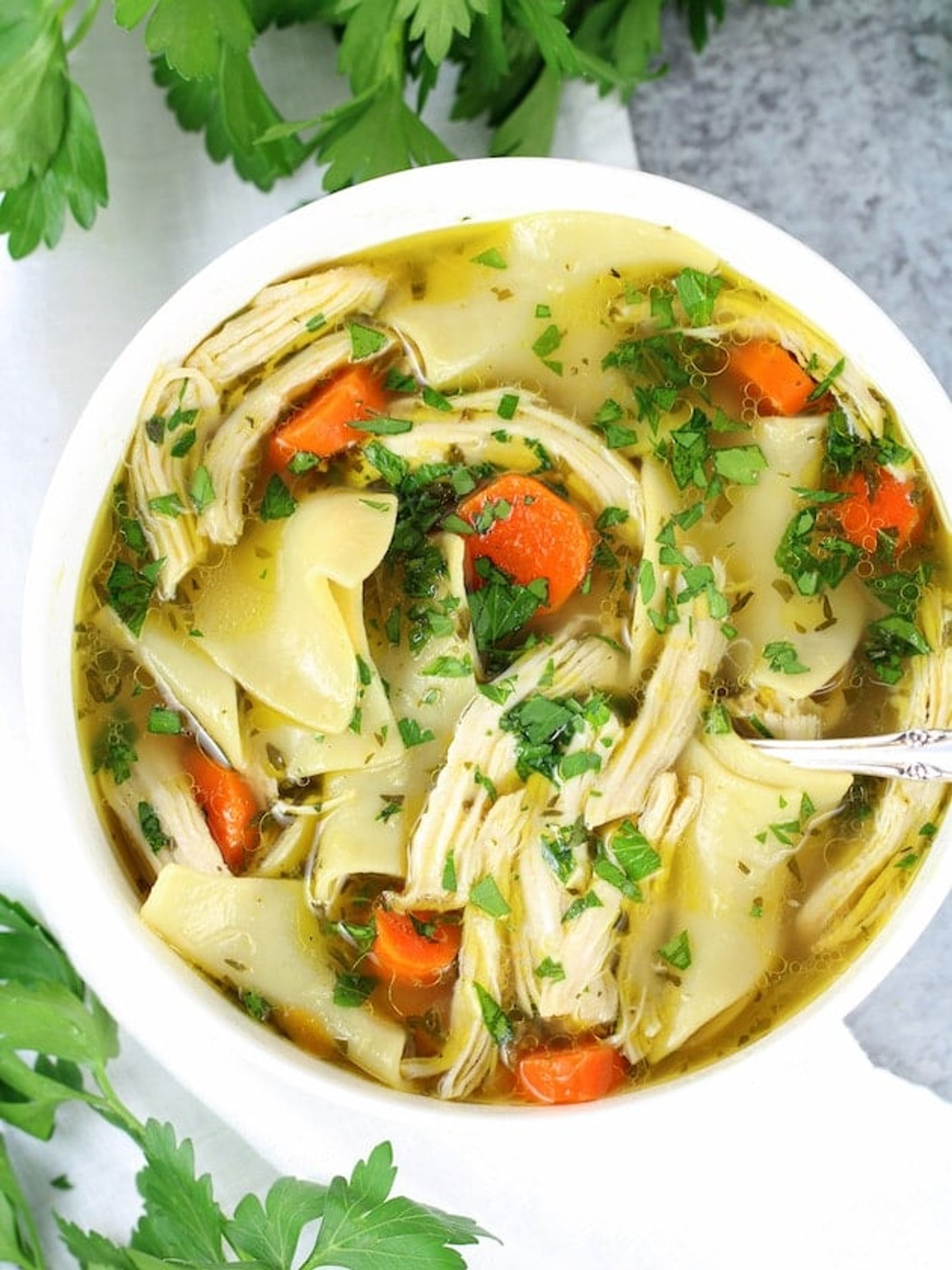 Instant Pot Chicken Noodle Soup - The most luscious satisfying chicken soup! Bold chicken stock, chicken, carrots, onions, garlic & celery, herbs & spices.