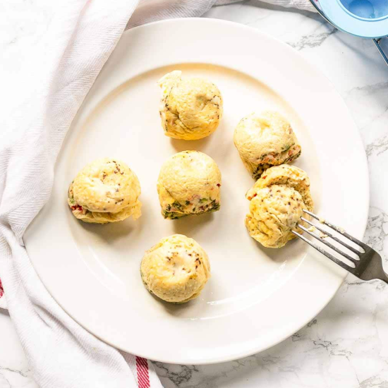 These Instant Pot Egg Bites without cottage cheese are easy to make and so tasty. Add your favorite ingredients and serve for breakfast, lunch, or brunch. Great for meal prep or to make ahead. Make them in a silicon mold so they will hold their shape.