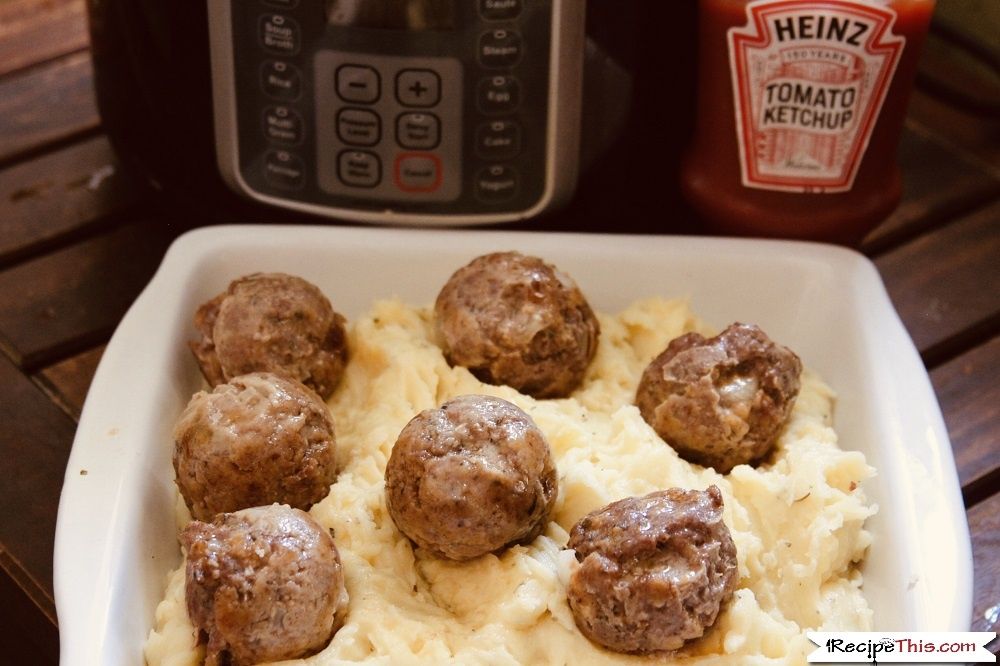 | Instant Pot Meatloaf And Mashed Potatoes. How to cook Instant Pot Meatloaf in egg moulds at the same time as mashed potatoes. End result is the most delicious meatloaf meatballs over mash potatoes in the Instant Pot that you have ever tried. |