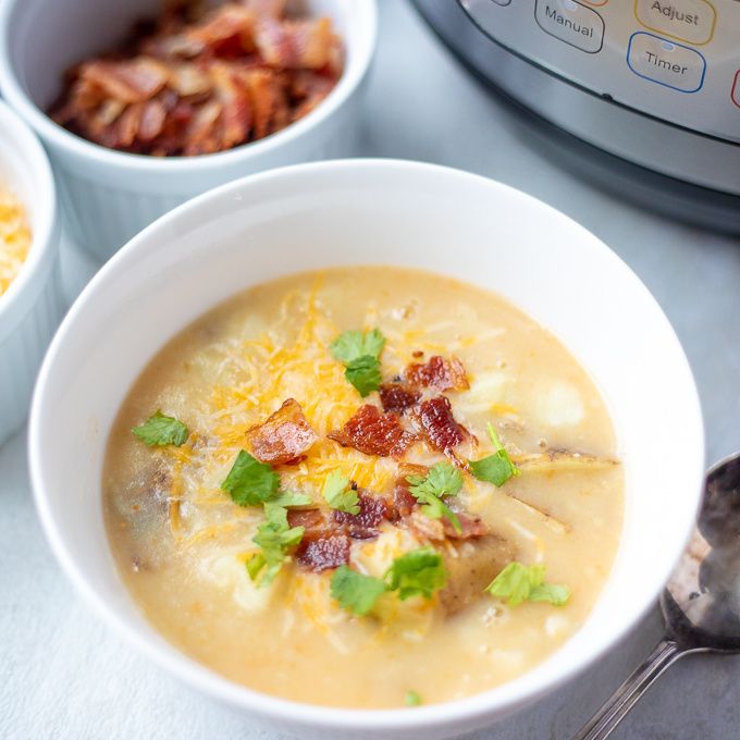 Soups Instant Pot Potato Soup amindMarch 05, 2019 75 Instant Pot Potato Soup, is an easy, gluten-free version of creamy baked potato soup that your family will love!Check out this delicious recipe!See the full directions on my site