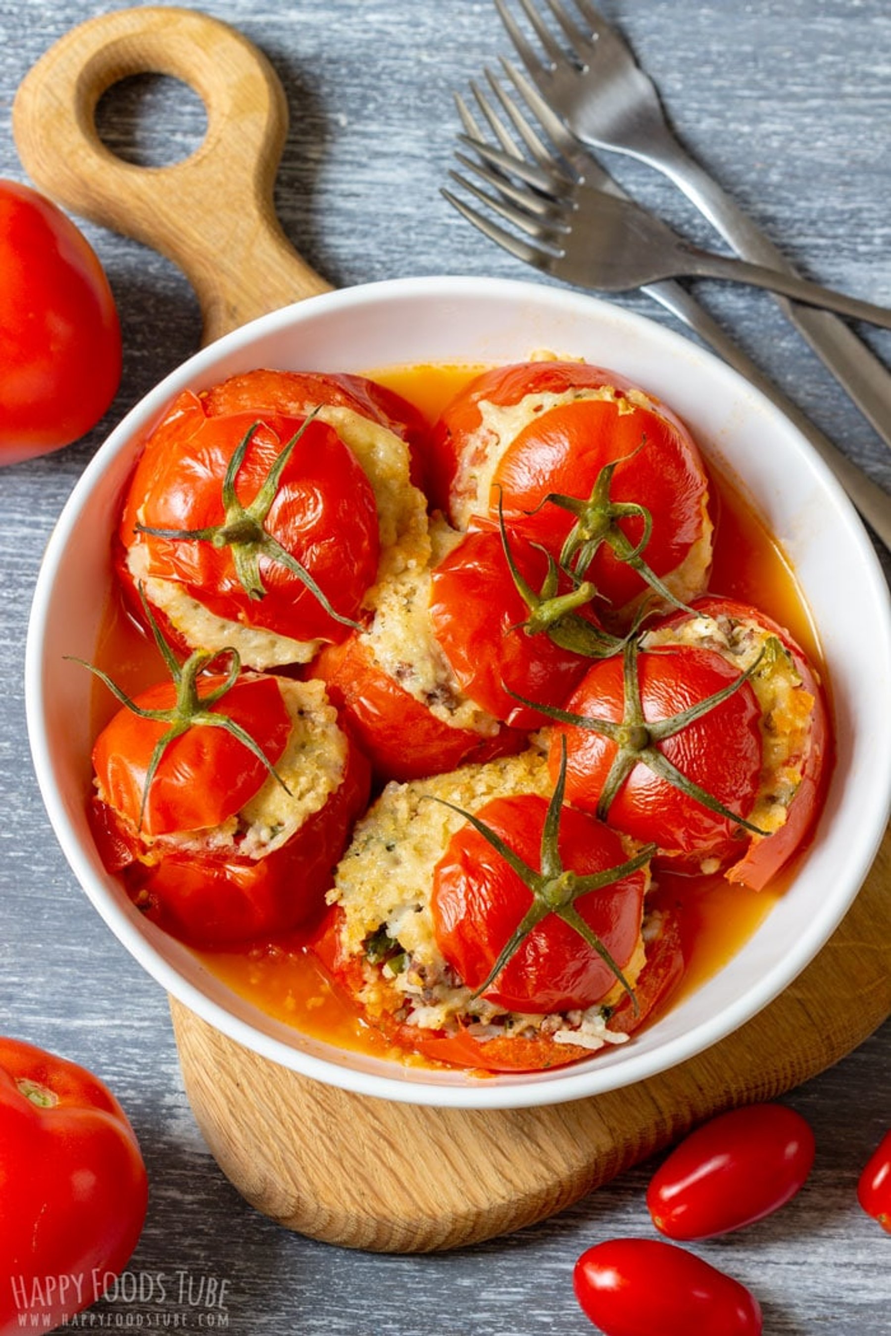 This is an easy and quick recipe for Instant Pot Stuffed Tomatoes. Tomatoes are stuffed with meat and rice and topped with breadcrumbs and cheese.