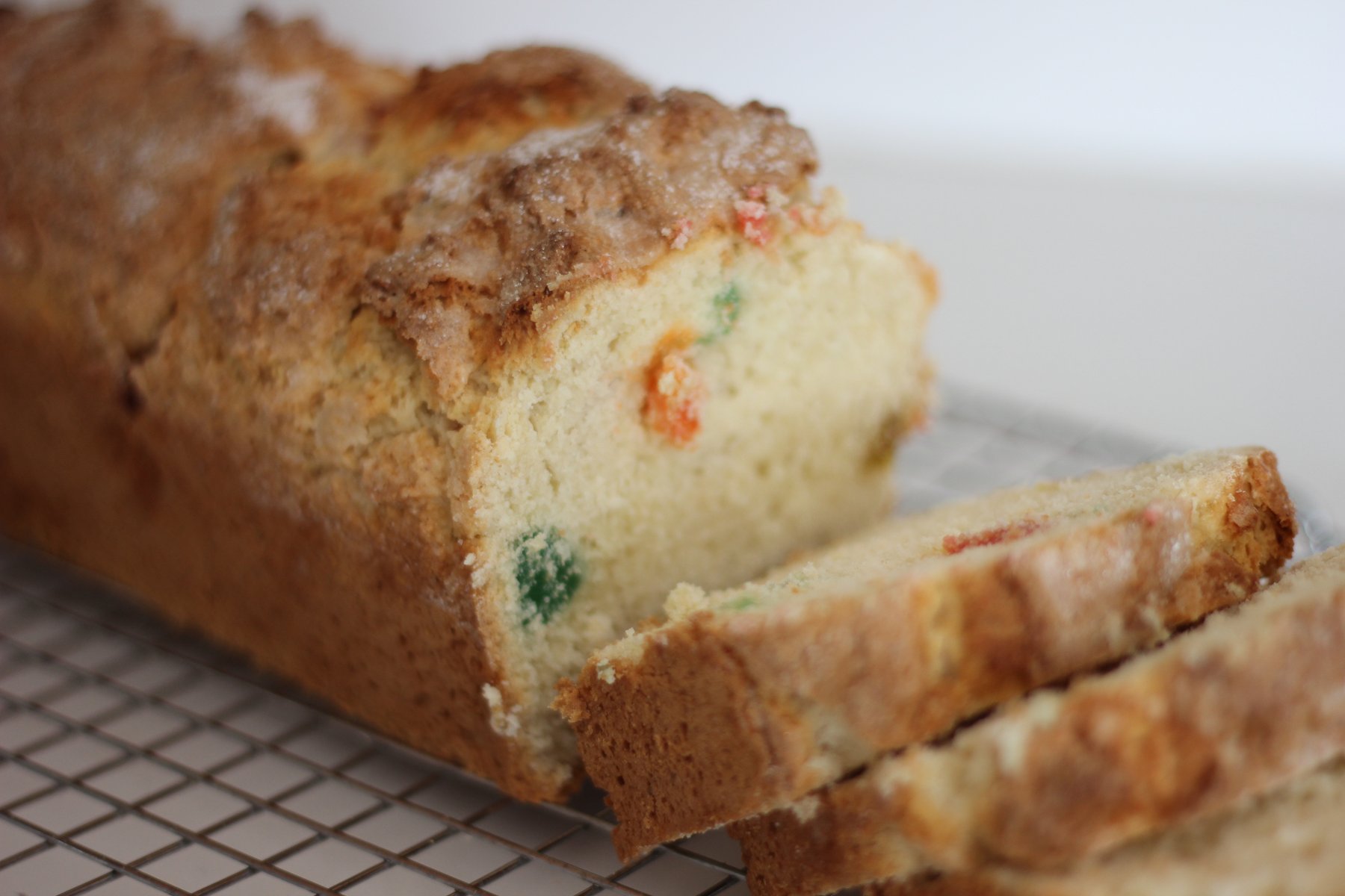 Sift dry ingredients together. Mix a little bit with the gumdrops until they’re not sticky. This will also help spread them evenly through the batter. Cut butter into dry ingredients until it’s combined...