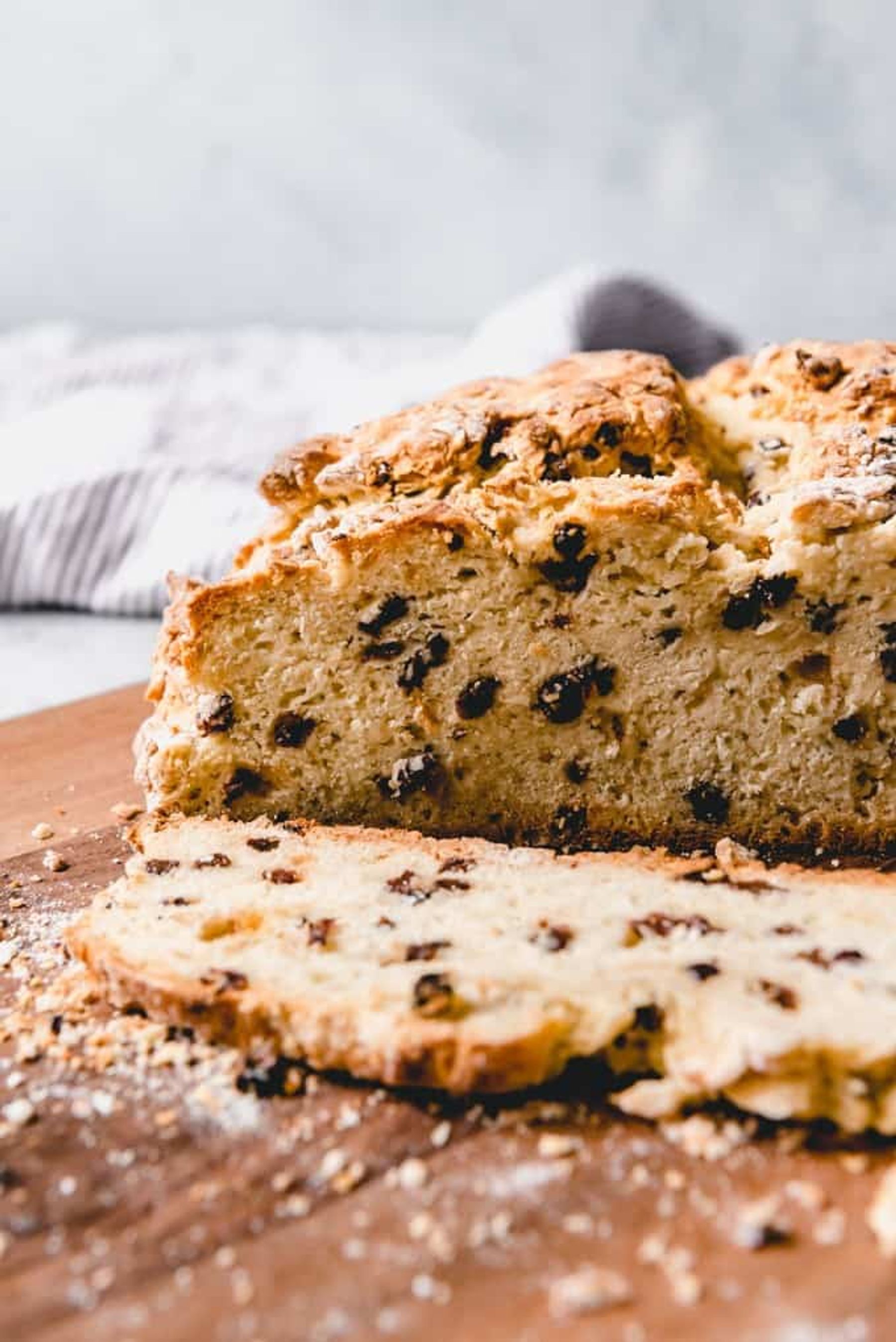 Traditional Irish soda bread recipe has only four ingredients - flour, baking soda, buttermilk, and salt. It's delicious warm with fresh butter!