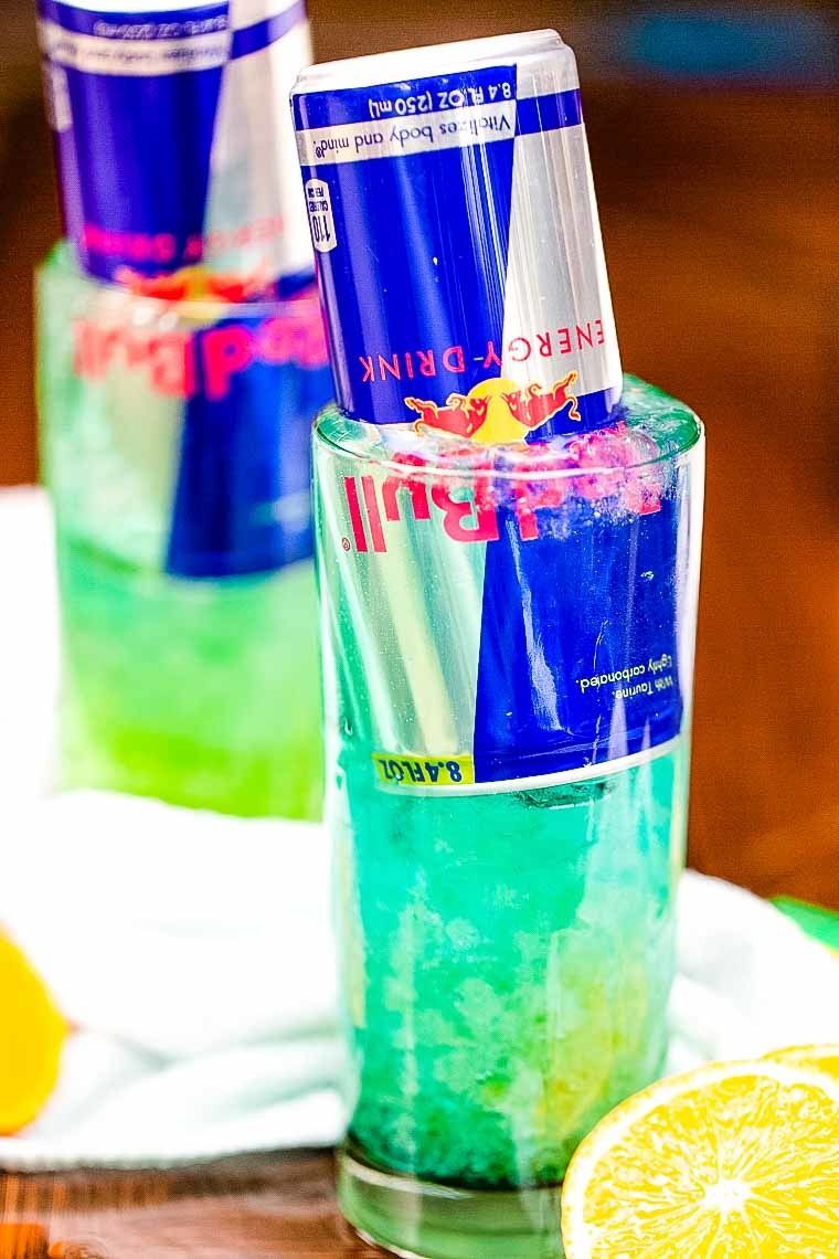 You don't have to be Irish to enjoy this beverage! This Irish Trash Can drink is a fun cocktail that mixes up a half dozen varieties of alcohol and then is topped with a can of Red Bull. It's the perfect cocktail for celebrating St. Patrick's day! The "Irish" name is simply because this beverage turns green after it mixes together. Plus, it's pretty and delicious to drink!