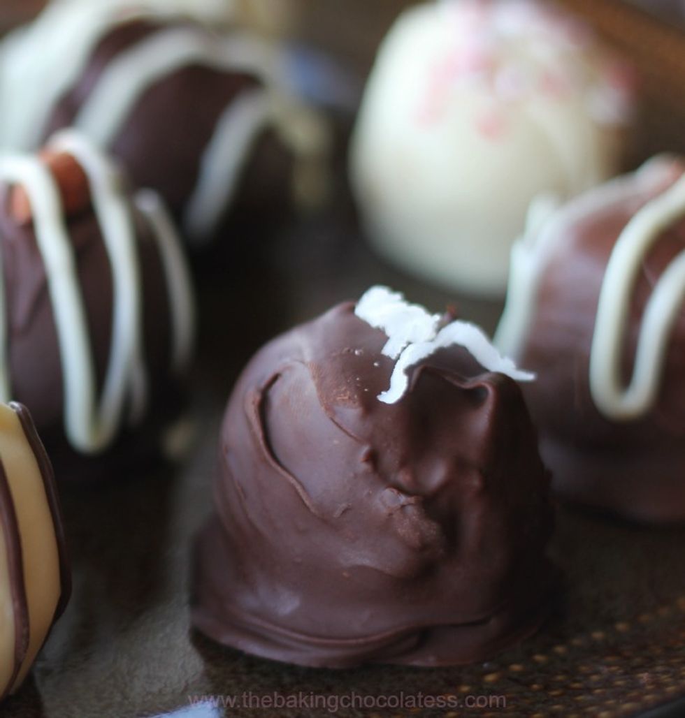 2 cups white, milk or dark chocolate chips, melted (or make all three kinds and split the chips up separately)