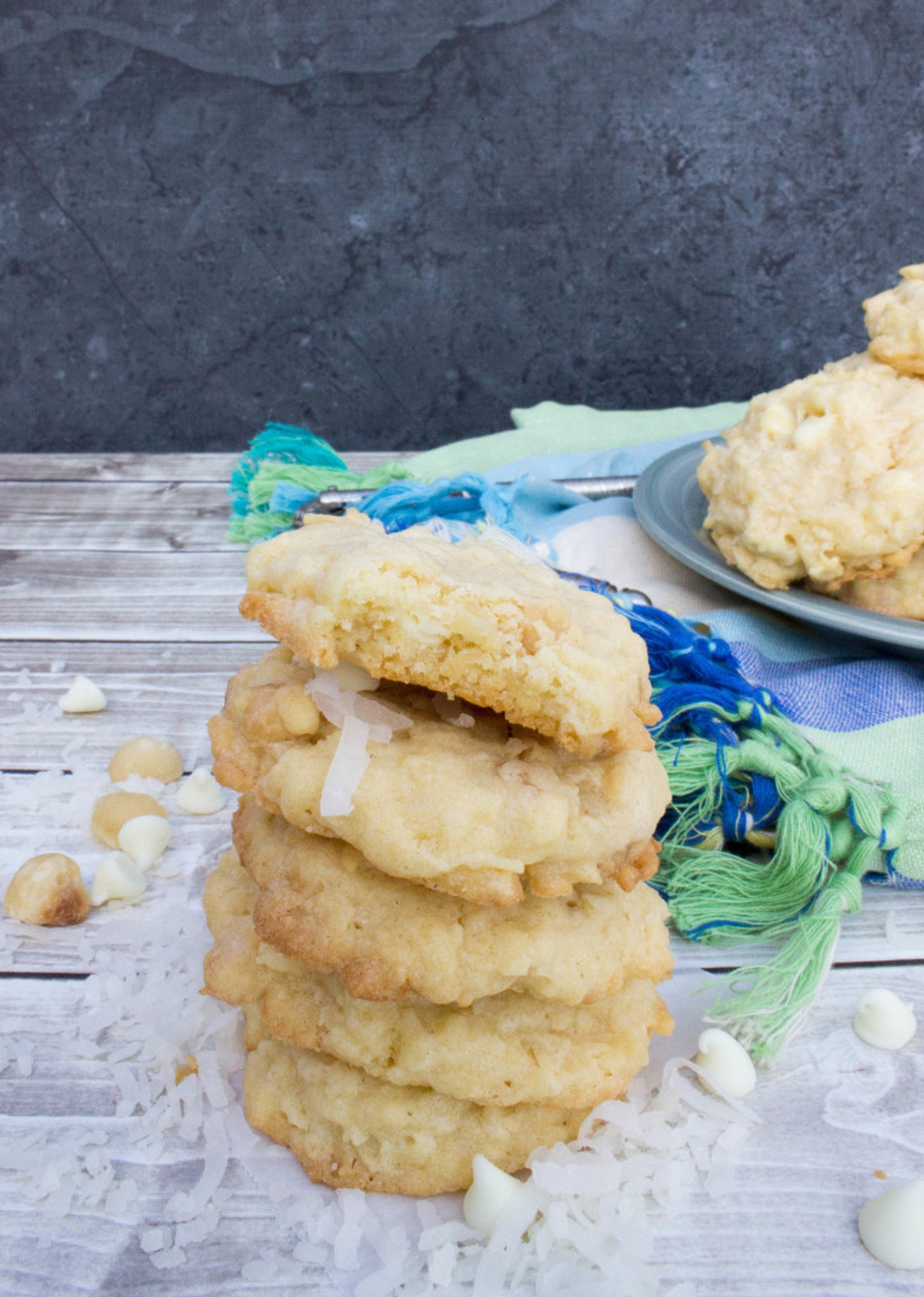 Soft, buttery cookies crammed with coconut, macadamia nuts, and white chocolate chips, these tropical cookies are like a mini vacation for your mouth.