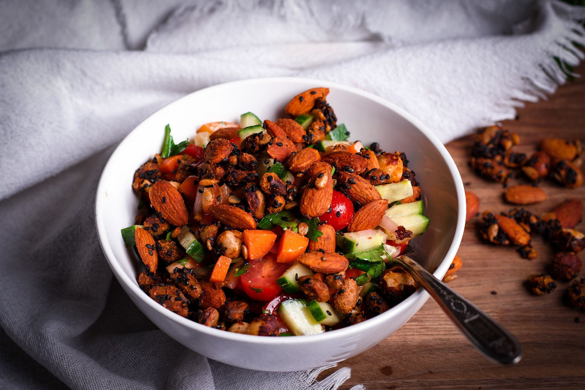 Israeli Salad with Pomegranate Vinaigrette and Roasted Nuts