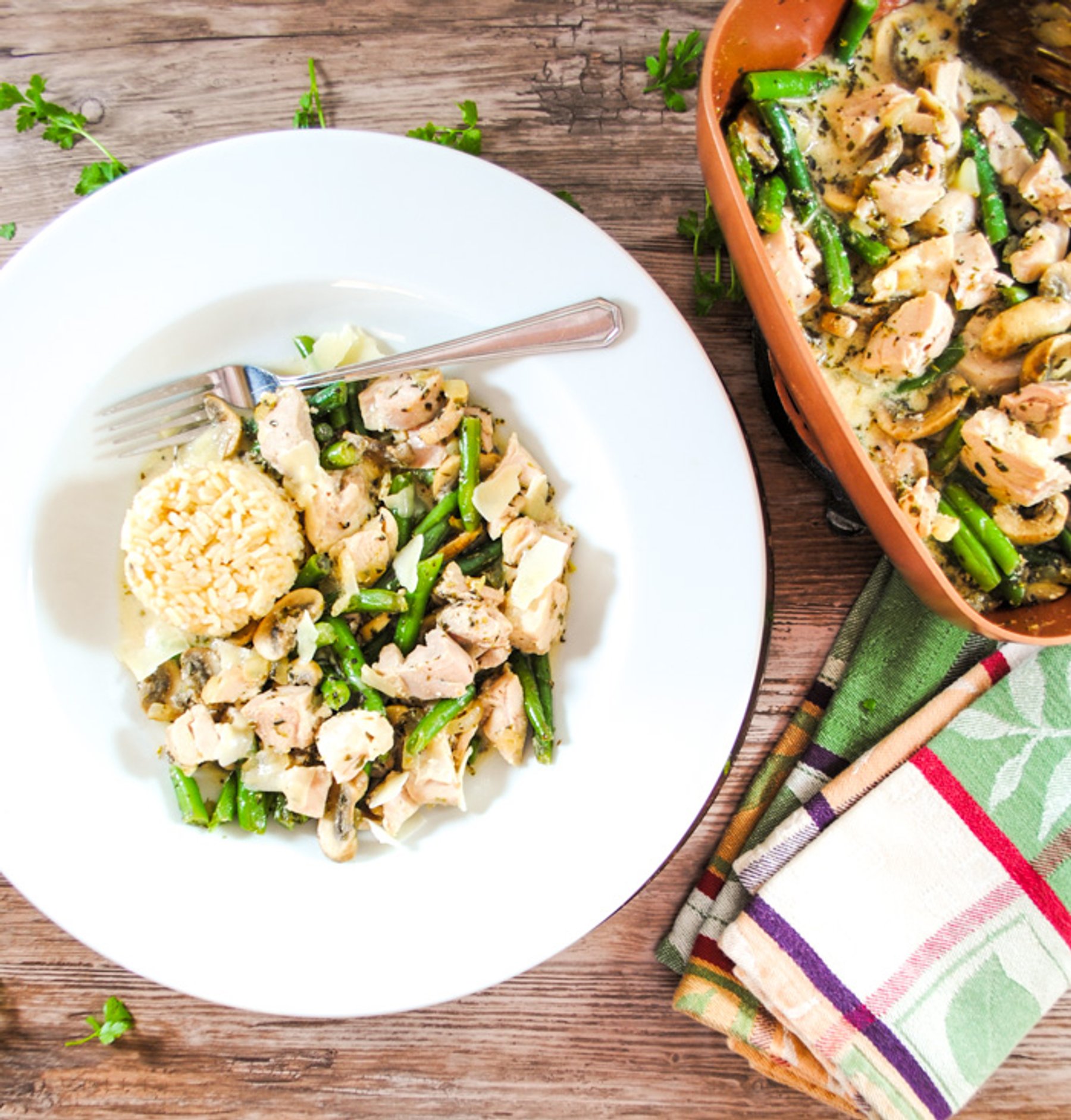 Italian Boneless Chicken Thighs with Green Beans, Mushrooms and Sour Cream Sauce