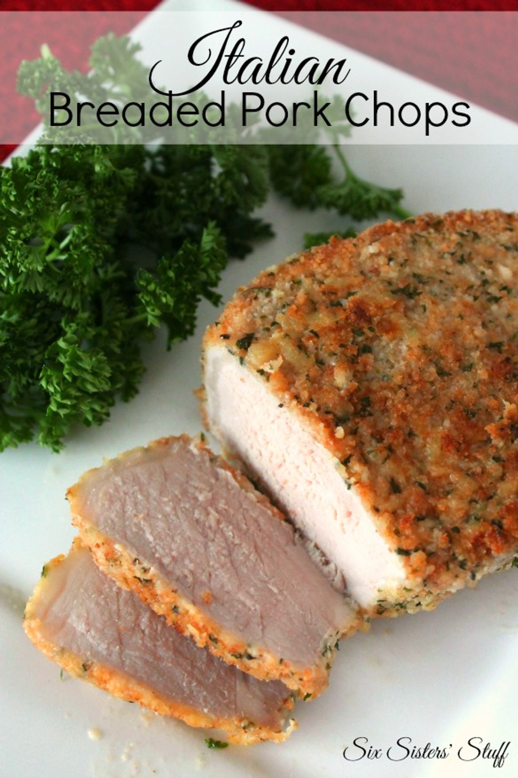These Italian Breaded Pork Chops are seared before baking, so all the juices are sealed inside! They are so tender and moist, there is absolutely no need for applesauce (even though it still tastes good dipped in it! ;) )