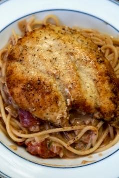 Cut the chicken breasts in half horizontally and pat dry with paper towels.