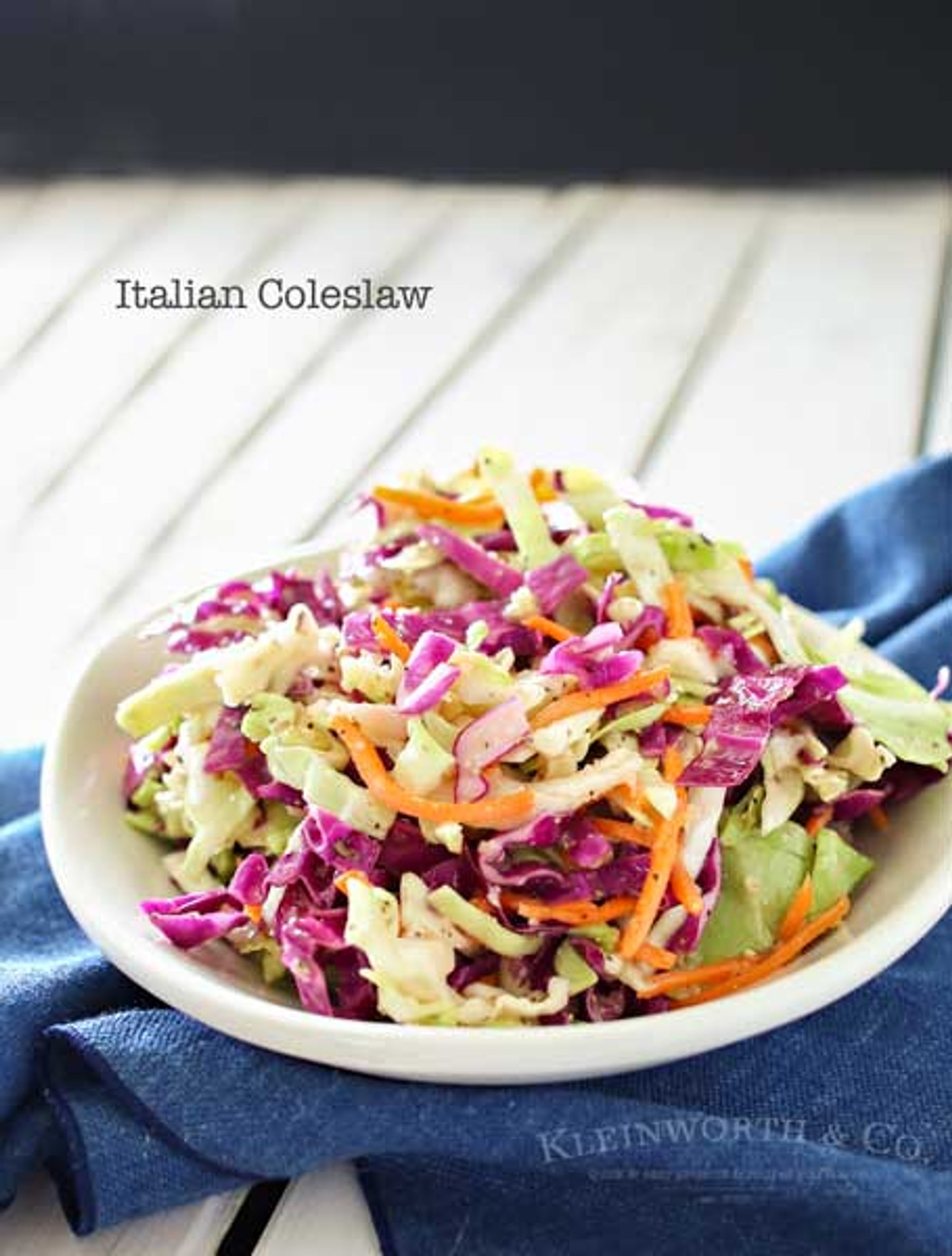 Italian Coleslaw is a twist on the classic backyard bbq side dish. Zesty & flavorful, this coleslaw recipe is sure to be a favorite all summer long.