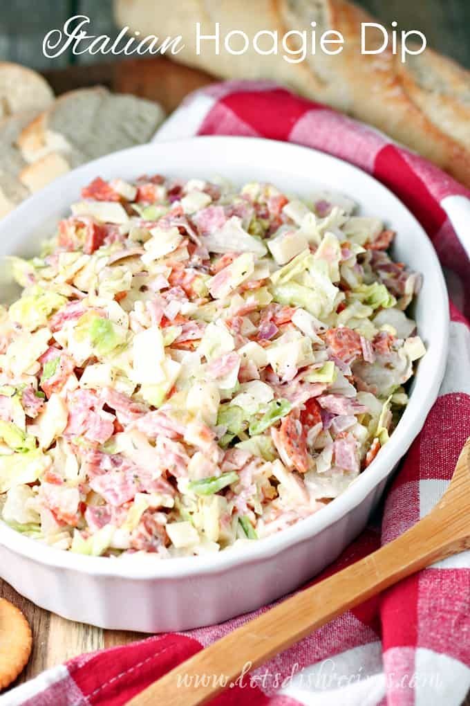 Italian Hoagie Dip: Your favorite Italian sub sandwich fixings, chopped and served dip-style with crusty baguette slices.