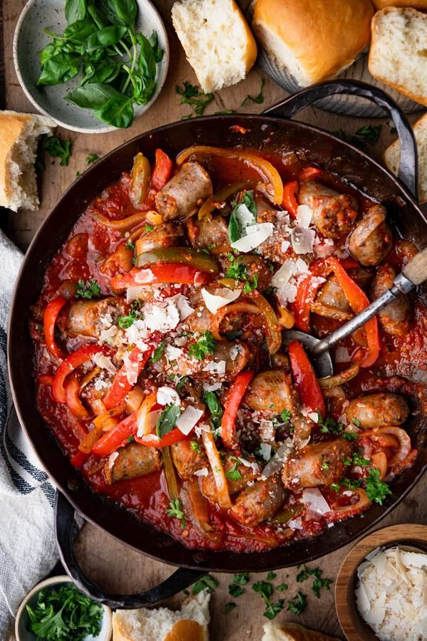 Italian sausage and peppers is a flavorful, Italian-inspired one-dish dinner! With onions, garlic, and tomatoes in the pan as well, these juicy sausages are so versatile. Stuff them in toasted hoagie rolls for sandwiches, serve them over pasta or rice, or soak up the extra sauce with a loaf of crusty bread. Add a simple green salad on the side for an easy meal that the whole family will love!