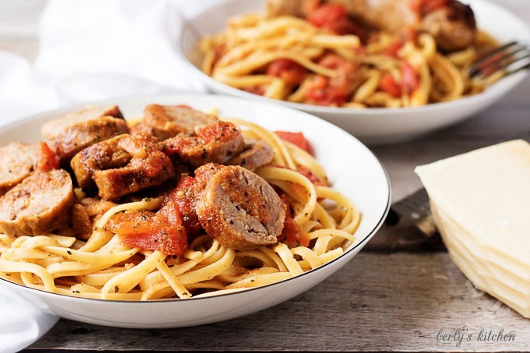 Main Dishes Italian Sausage and Tomato Linguine Kimberly VargoSeptember 04, 2017 87 A meaty, spicy Italian sausage and tomato linguine recipe that’s perfect for a quick weeknight dinner. Proving good food doesn’t have to take all day!2https://www.berlyskitchen.com/italian-sausage-tomato-linguine/See the full directions on my site